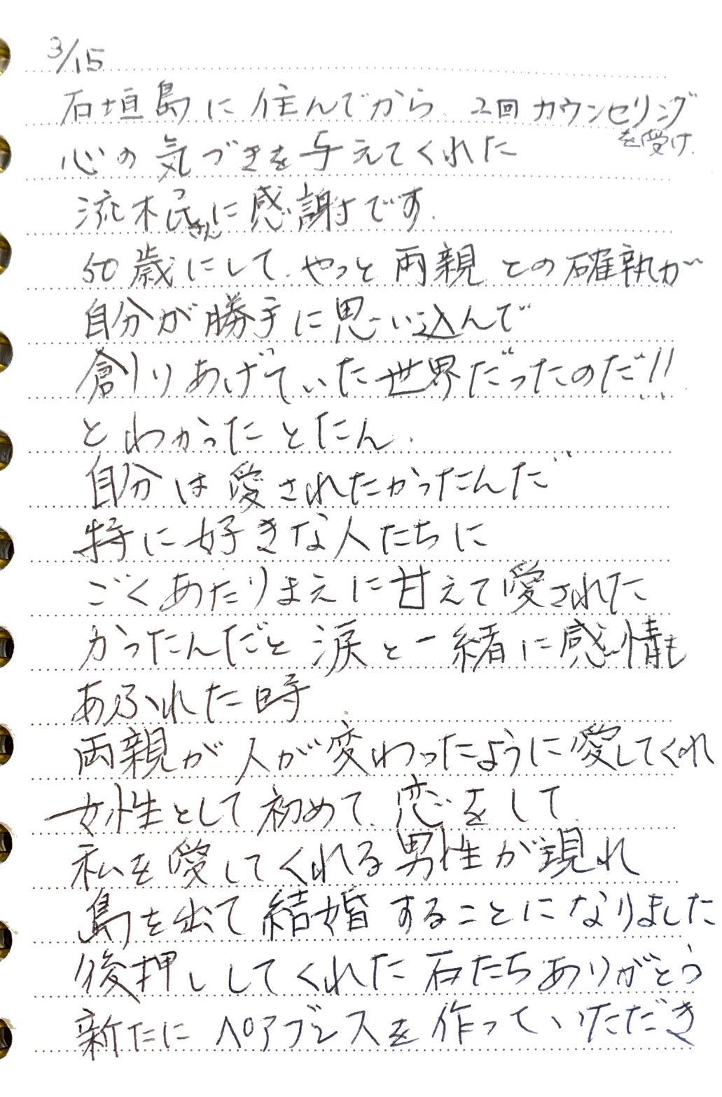 両親と話し初めて甘えることが出来たとご報告を頂きました。